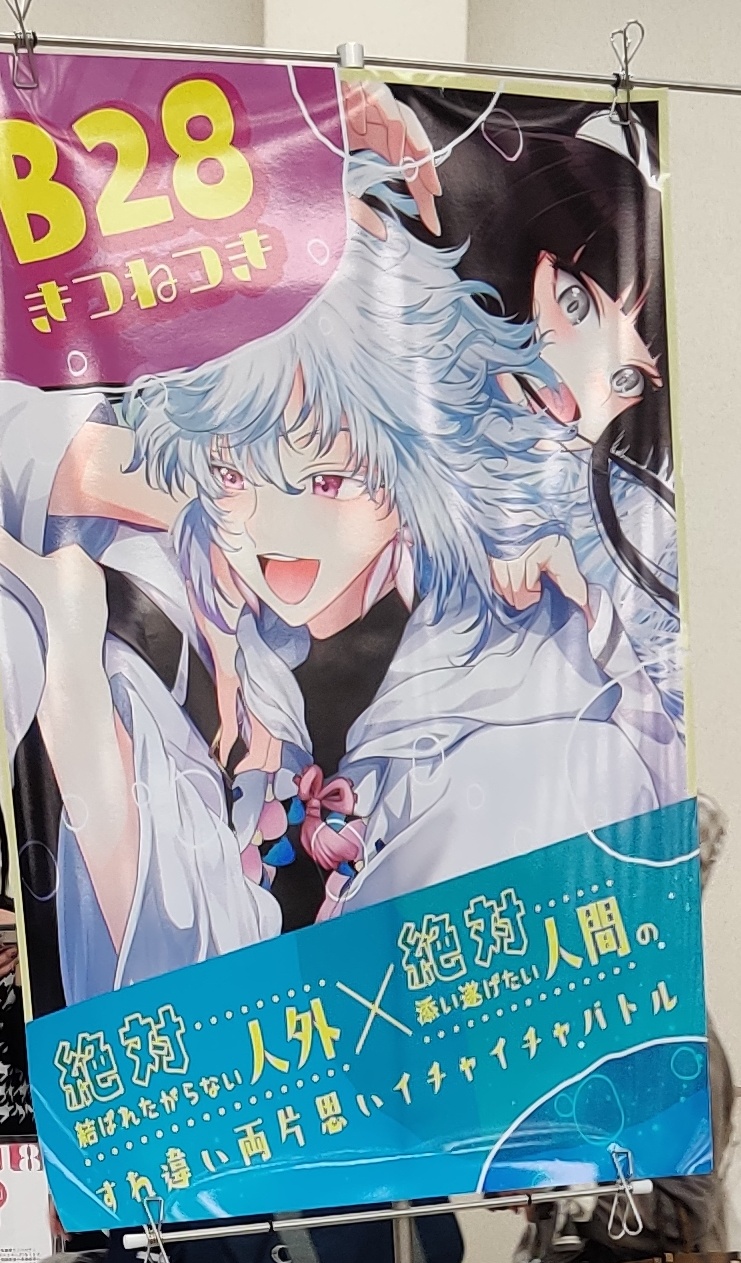夢箱に、私の夢創作を目当てにくる方は少ないだろうと思ったので、一目で分かるように~と思ってポスターはCP紹介用に作りました。ただこの絵の頒布物は無いので、この絵を使い回して自カプ紹介シート(無配)とかあってもいいのかなぁとかもやもや考えてます。面白い方法が思いついたらそれやりたいな。もう時間無いけどな。