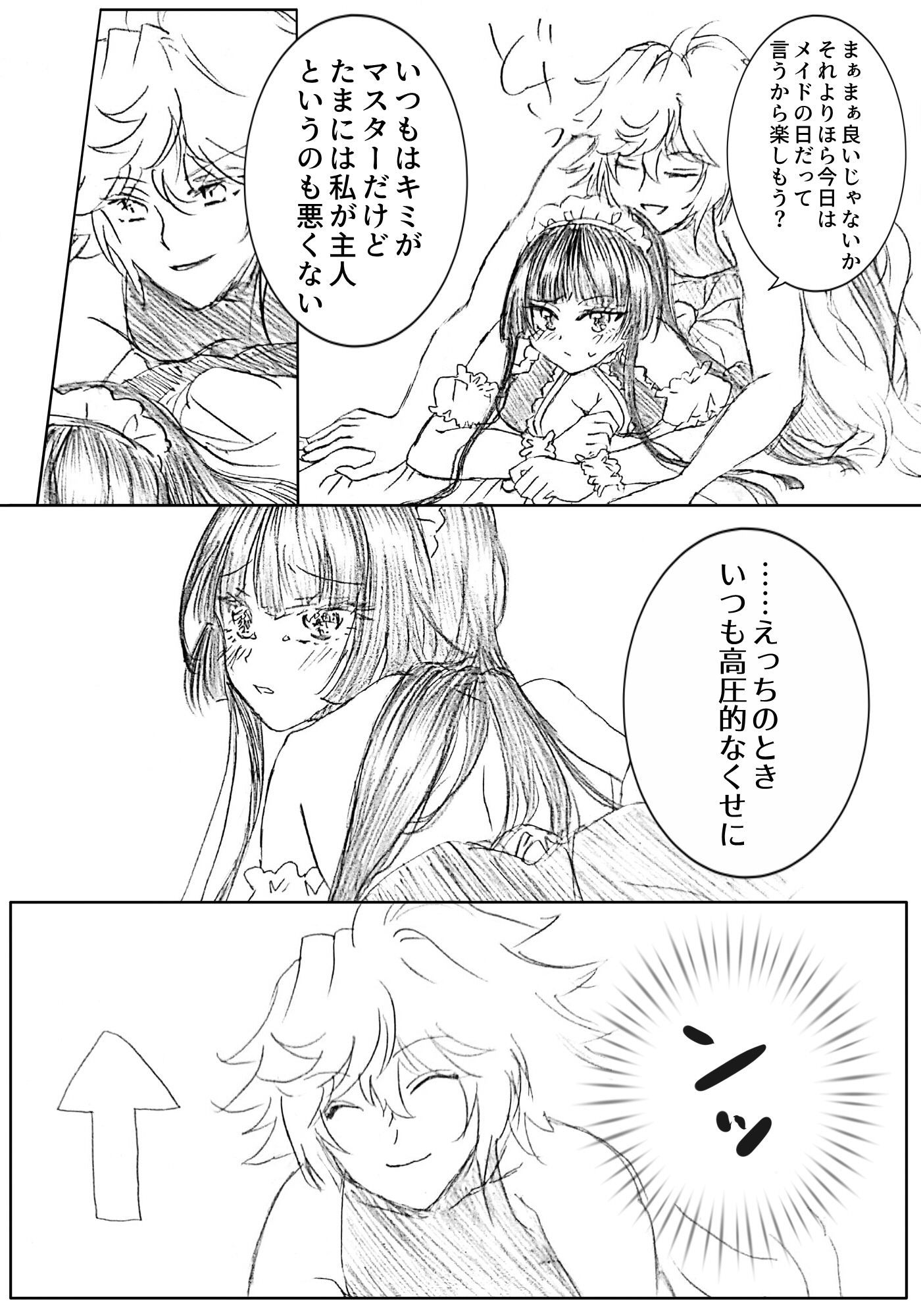 メイドの日って聴いて突発的に描いた漫画(ただメイド服が描きたかっただけともいう)頻繁に態勢が変わるのは私の力不足