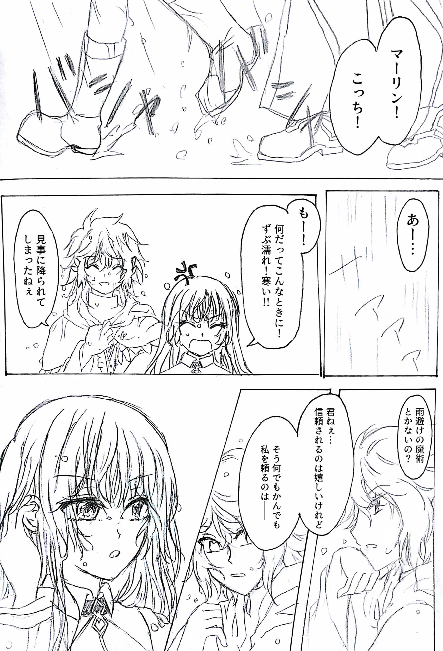 どっかの特異点で二人行動中雨に降られた感じ。