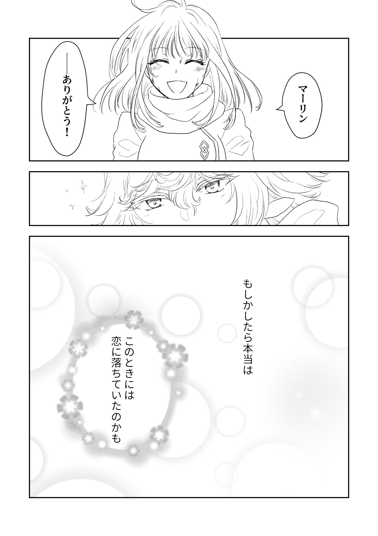場面的にはまだですけど、バビアニ見てて戻ってきたマーリンが照れてるの見たらたまらんくなって描きました。実際に恋をしていたかはともかくとして、どうでもいい言葉が響いた二人目の存在というのはでかいんじゃないでしょうか。あ、言い忘れてましたがバビロニアの頃は夢主セミロングです。終局で本気出したらめちゃめちゃ伸びました。