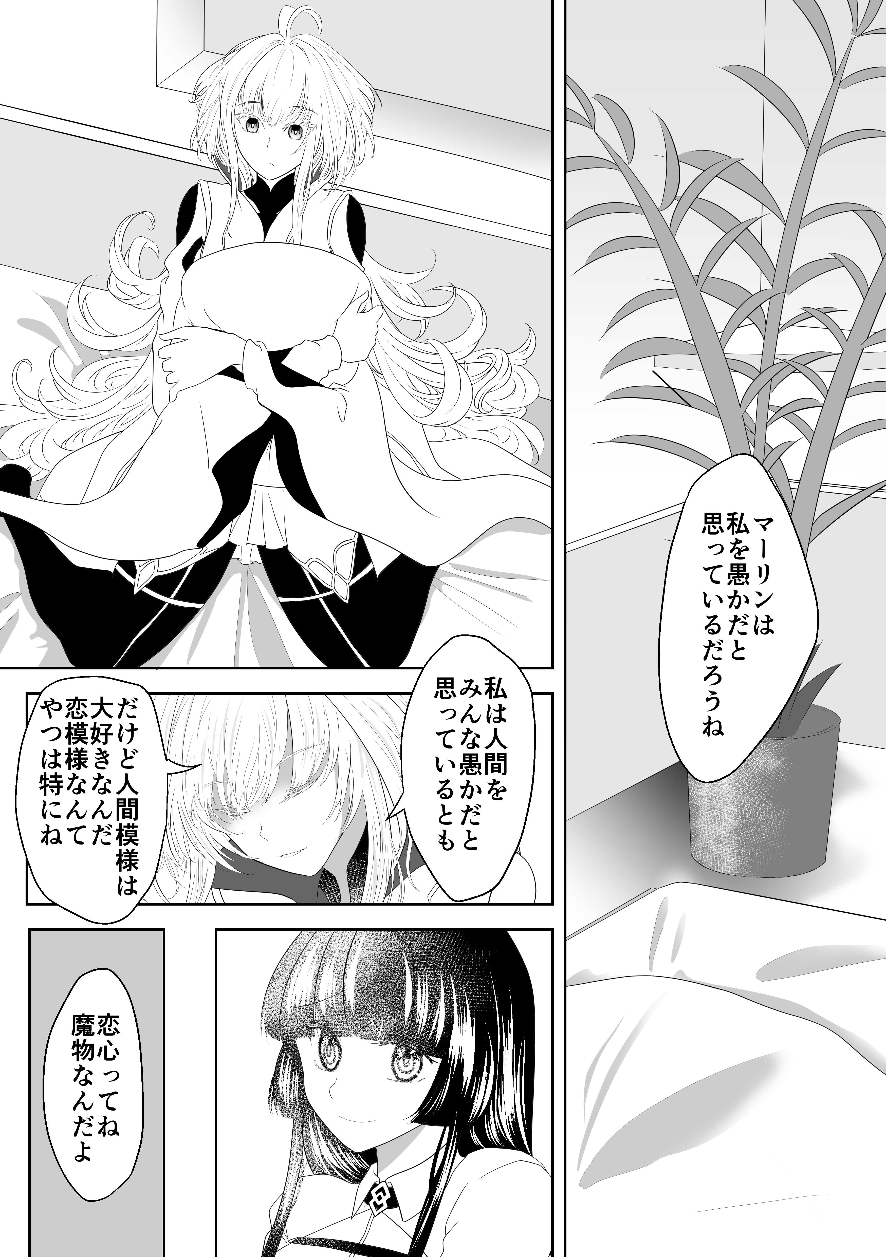 最初の台詞はプロトマーリンに言ってるしプロトマーリンも自分はって返事してますが、イコールマーリンも同じだろうなと双方思ってますし最後の台詞も男女共通見解です。
