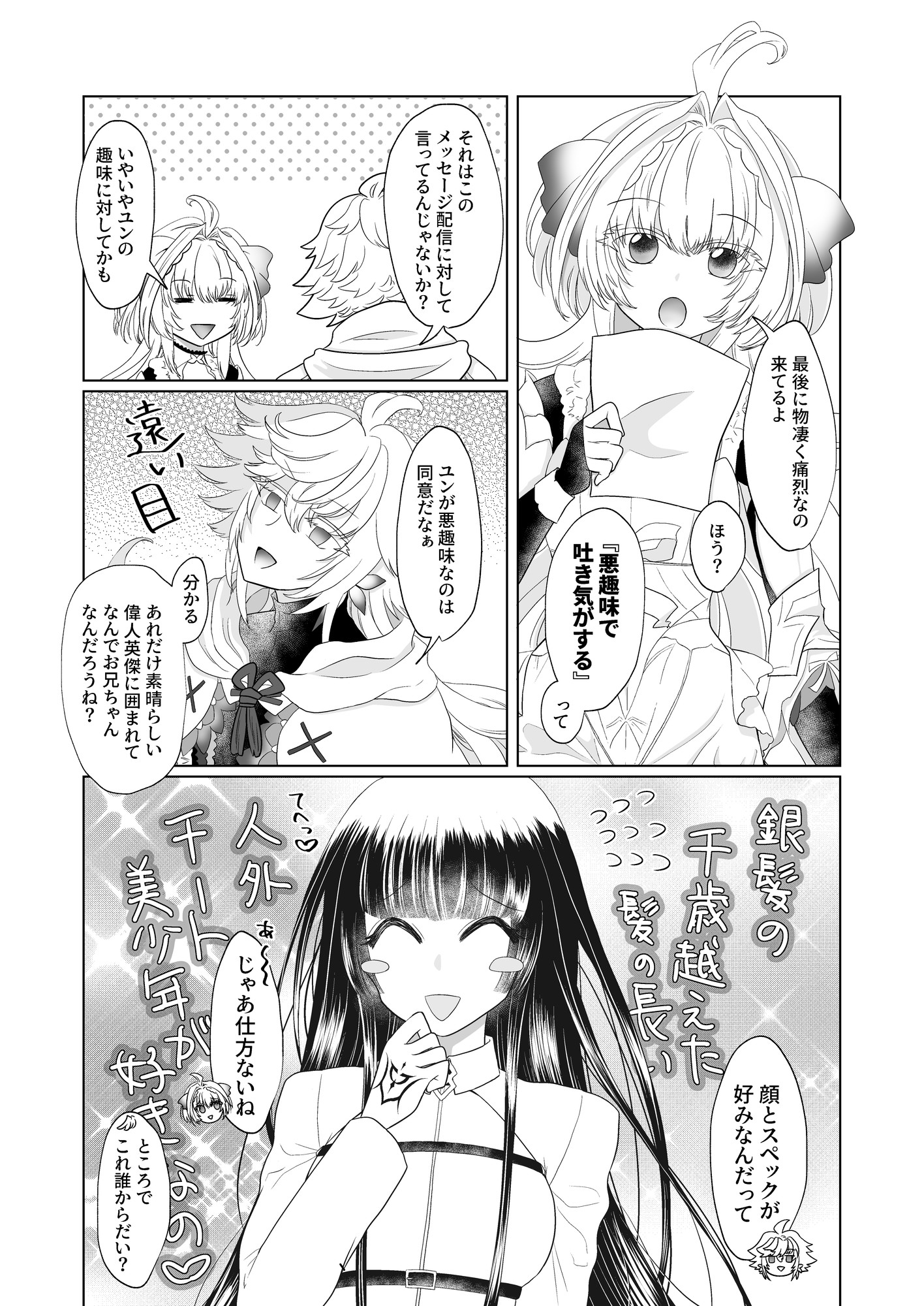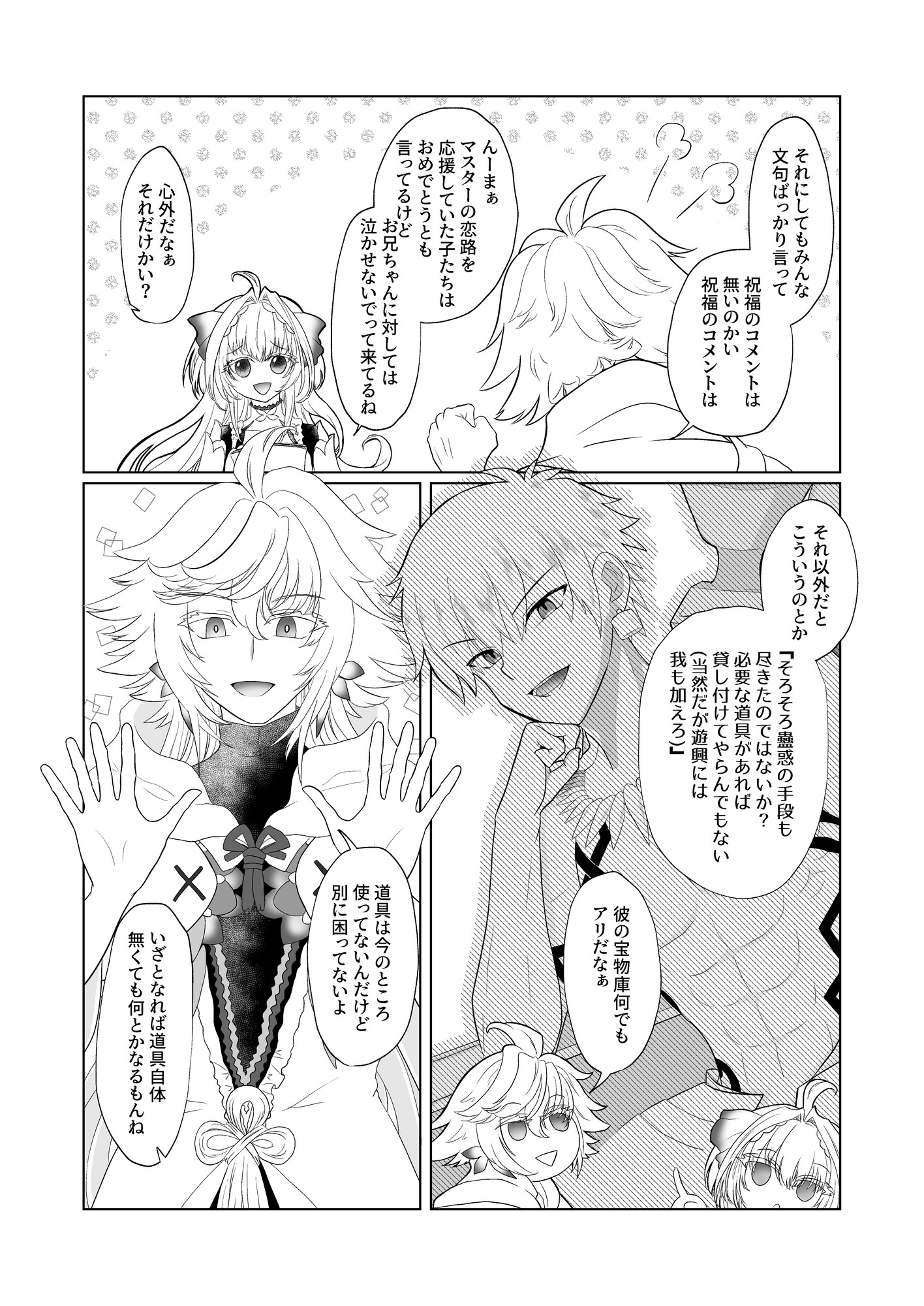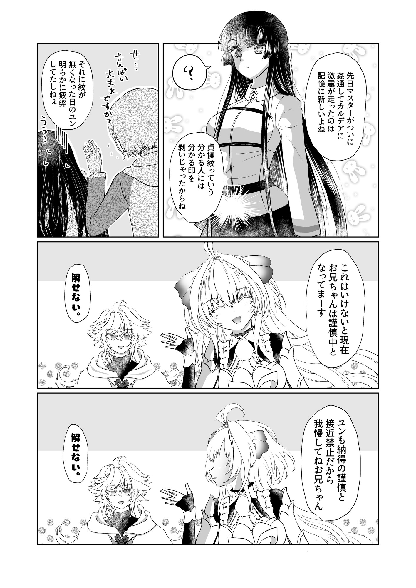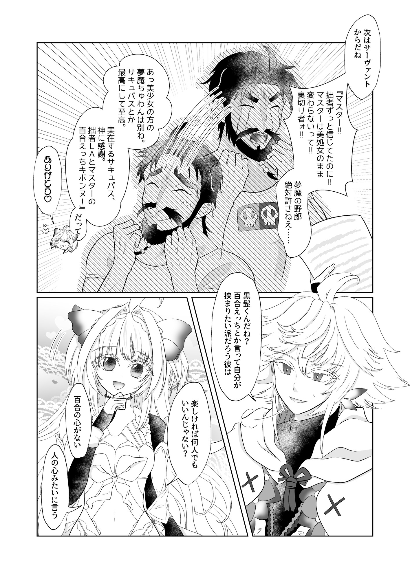 LA描きてえ~LAとマーリン会話してくれ~って思いつつ何描いていいか分かんなかったので、友達にどんなネタがいいか相談したら、夢主の処女喪失についてサーヴァントからコメント欲しいって言われて、いいね!欲しいわ!!って二つ返事で描きました。(経緯については小説リミット・ブレイク参照※R18)