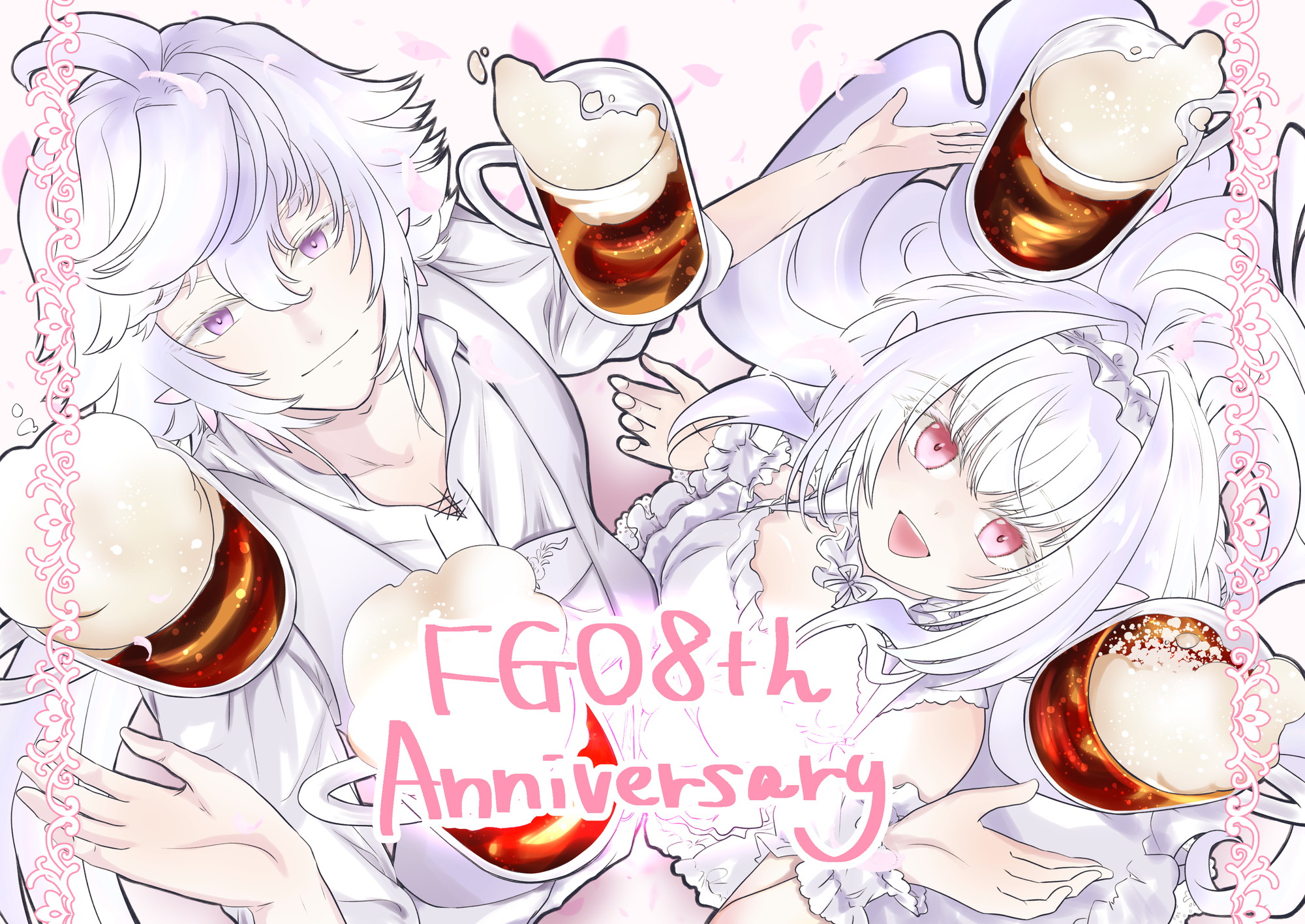 FGO8周年記念のオンラインフラッグ用に描きました。サササ~ッと塗ったらまぁまぁ見れる絵になった気がするので載せちゃう。